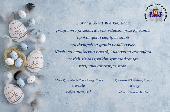 Życzenia od kierownictwa brzeskiej Policji z okazji Świąt Wielkanocnych