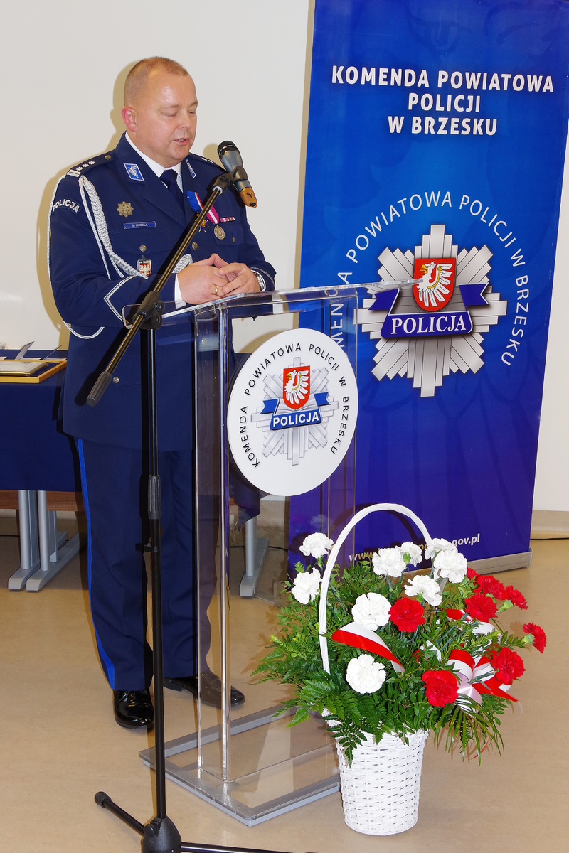 Po wręczeniu mianowań, odznaczeń i wyróżnień przyszedł czas na okolicznościowe przemówienia. Pod adresem policjantów padło wiele ciepłych słów i życzeń ze strony zaproszonych gości. Zastępca Komendanta Wojewódzkiego Policji w Krakowie insp. Mariusz Kudela w imieniu kierownictwa małopolskiej Policji przekazał funkcjonariuszom życzenia, dziękując za codzienny trud i starania na rzecz bezpieczeństwa mieszkańców. Przemawiający Wicetarosta Brzeski Maciej Podobiński i Burmistrz Brzeska Tomasz Latocha skierowali do policjantów i pracowników brzeskiej Policji słowa uznania, dziękując za poświęcenie.