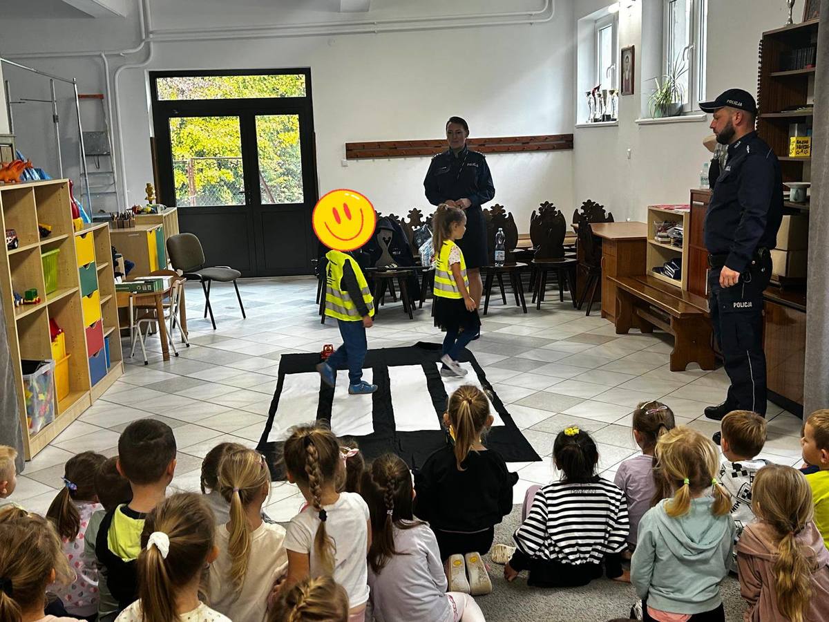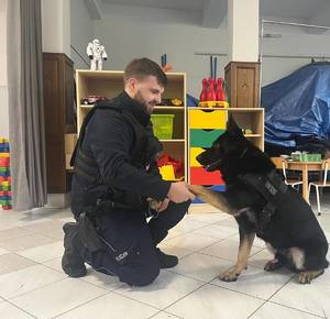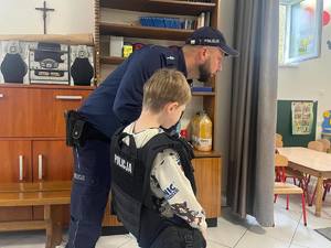 Wczorajsze spotkanie z przedszkolakami było doskonałą okazją do rozmowy z najmłodszymi o zagrożeniach związanych z przemocą. Podczas wizyty mundurowych był też czas na lekcję bezpieczeństwa, mowa była o zasadach poruszania się po drogach czy korzystania z przejść dla pieszych. Przedszkolaki przypomniały sobie zasady bezpieczeństwa podczas zabawy w przedszkolu czy domu. Policjanci pokazali maluchom wyposażenie do służby. Największe emocje wzbudziła obecność policyjnego psa Hadesa i jego przewodnika. Dzieciaki z radością powitały czworonoga a on odwdzięczył się pokazem swoich umiejętności. Na zakończenie spotkania każdy przedszkolak otrzymał odcisk swoich linii papilarnych.