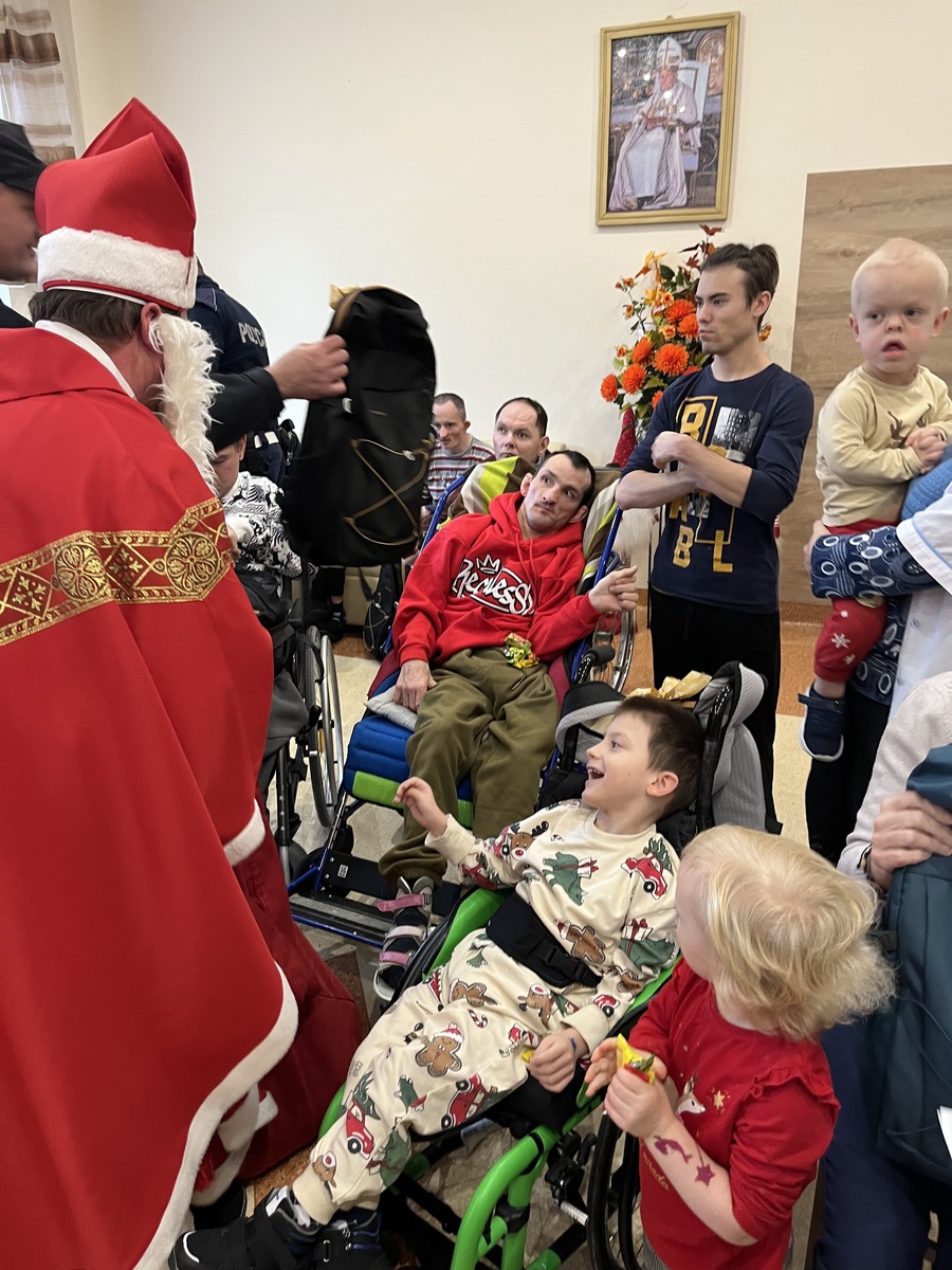 Święty Mikołaj w asyście policjantów i strażaków z wizytą u podopiecznych Domu Pomocy Społecznej