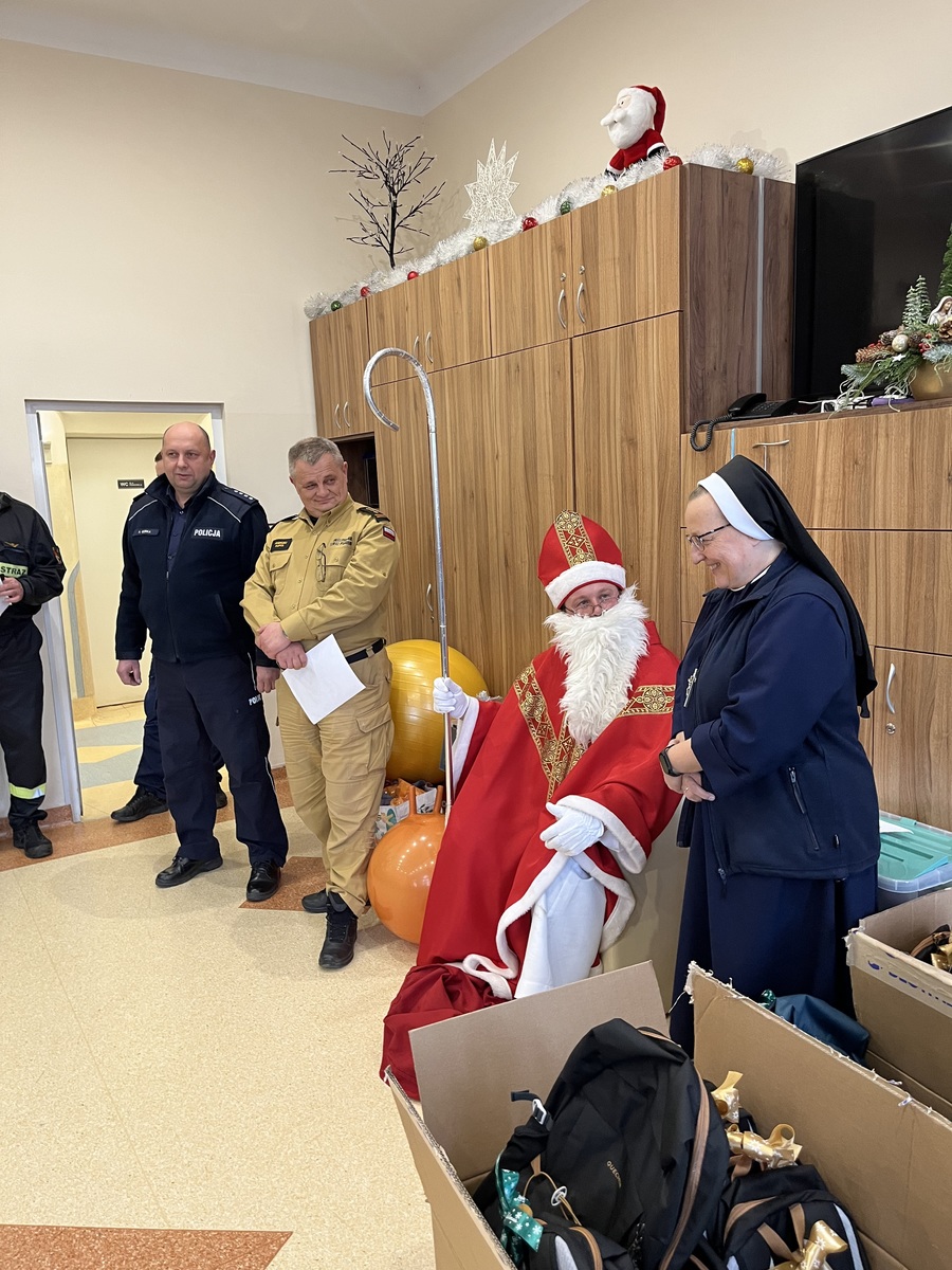 Jak co roku z początkiem grudnia św. Mikołaj ma pełne ręce roboty. Szczególnie pamięta o tych, którzy na co dzień borykają się z różnymi problemami i trudnościami. Chcąc sprawić radość potrzebującym Mikołaj w asyście policjantów z Komendy Powiatowej Policji w Brzesku oraz strażaków z Komendy Powiatowej Państwowej Straży Pożarnej w Brzesku odwiedził wychowanków Domu Pomocy Społecznej prowadzonego przez Siostry Służebniczki NMP w Brzesku obdarowując ich prezentami.